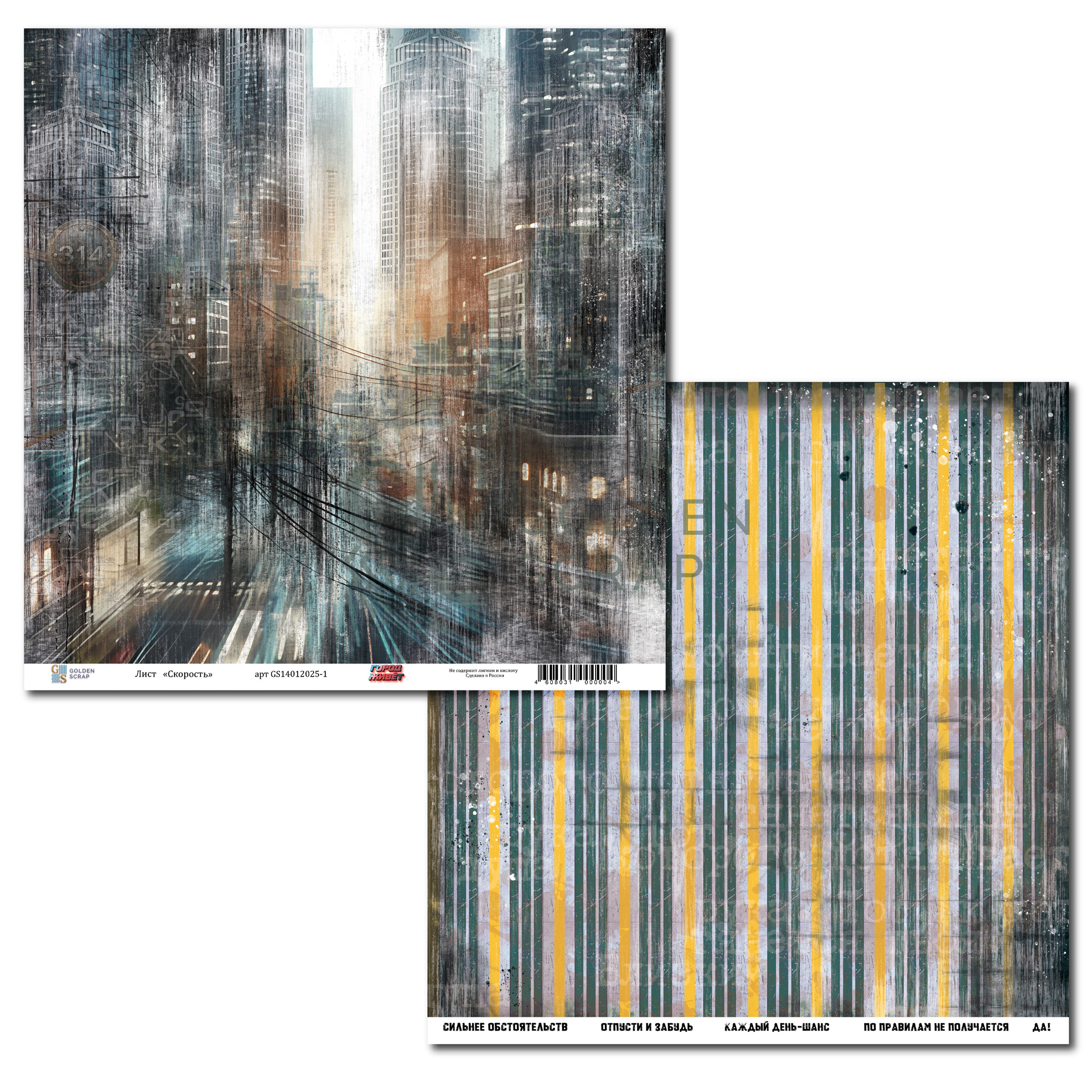 Набор двусторонней бумаги для скрапбукинга "Город живёт" от GoldenScrap, 30,5*30,5 см, 12 двусторонних листов (6х2 шт), плотность 235 г/м2, GS14012025