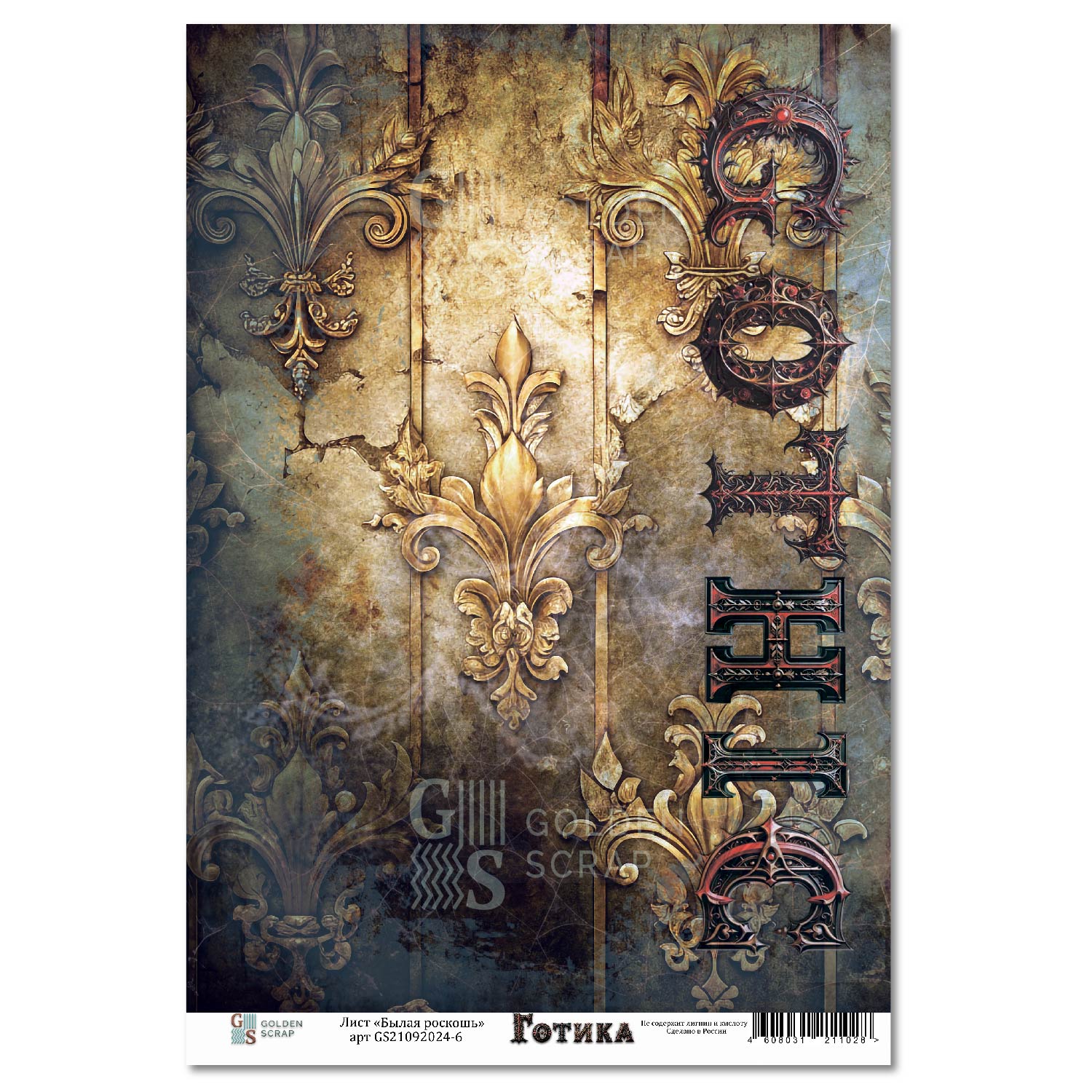 Лист односторонней бумаги для скрапбукинга "Былая роскошь" (обложка) к коллекции "Готика" от GoldenScrap, 235 г/м3, арт. GS21092024-6