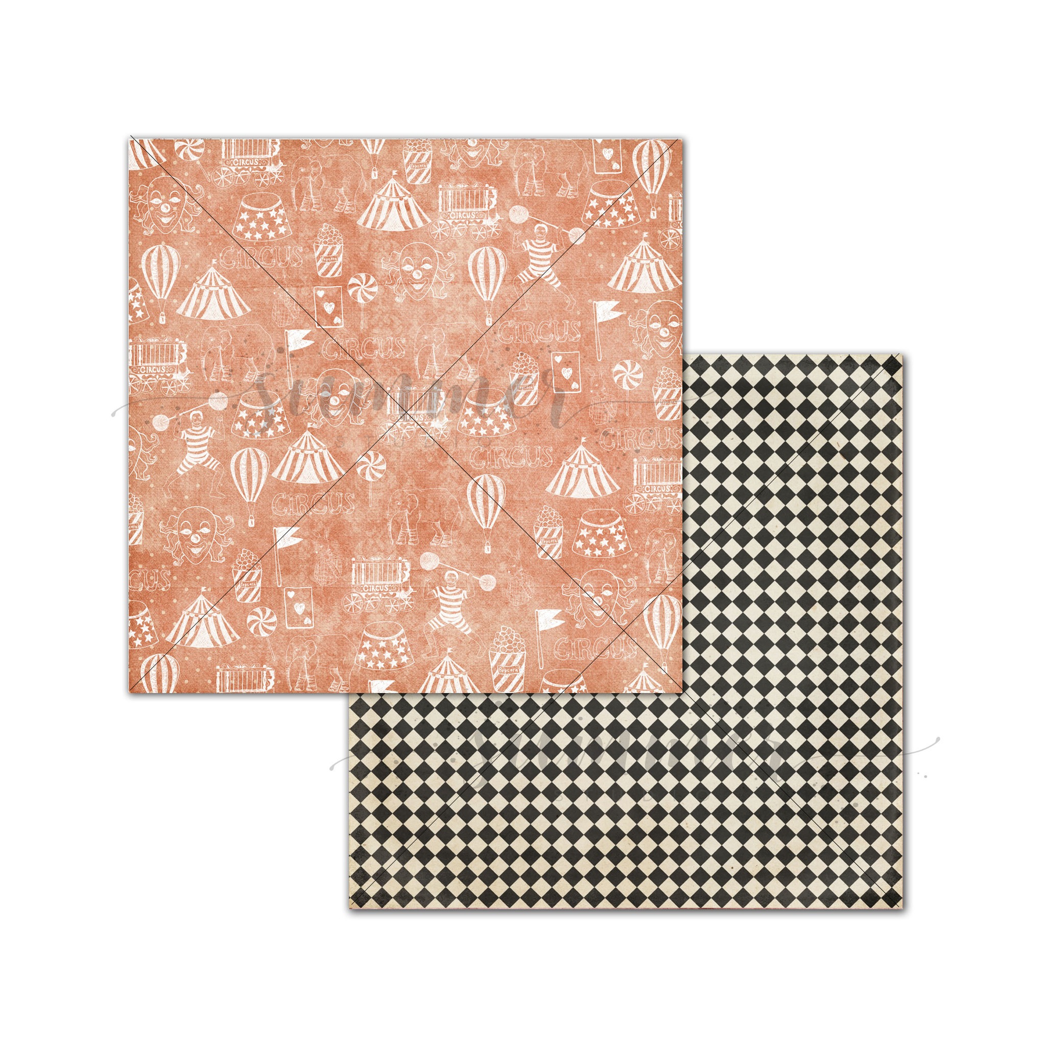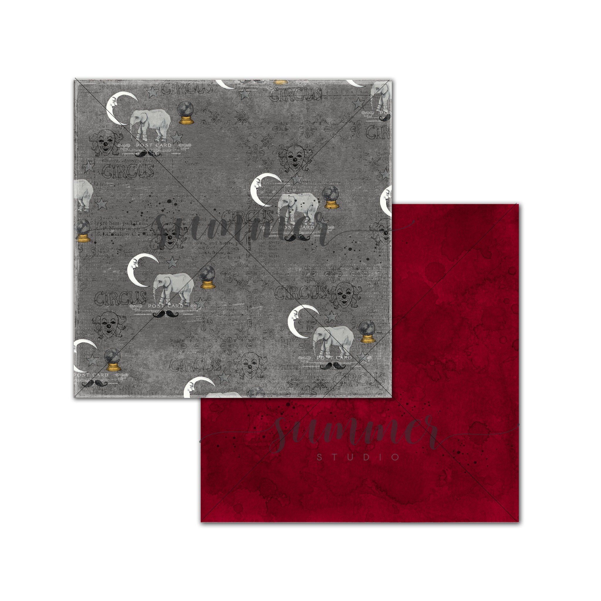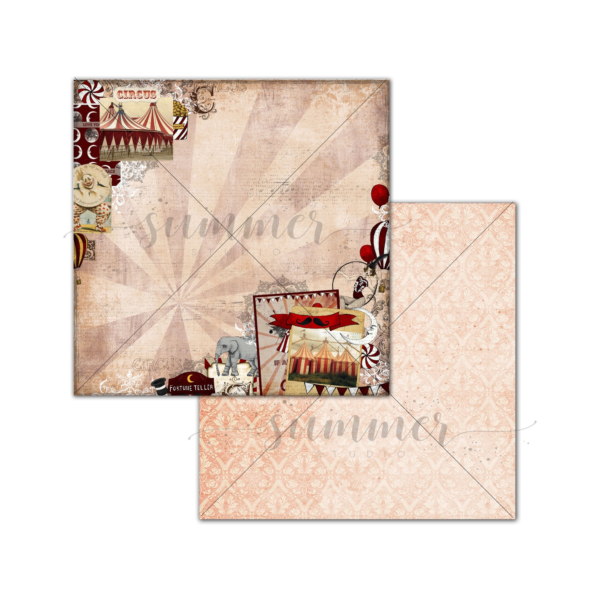 Набор двусторонней бумаги (10 листов + 1 бонус) "Цирк" (Circus) 30,5х30,5 см (250 г/м), от Саммер Студио (Summer Studio)