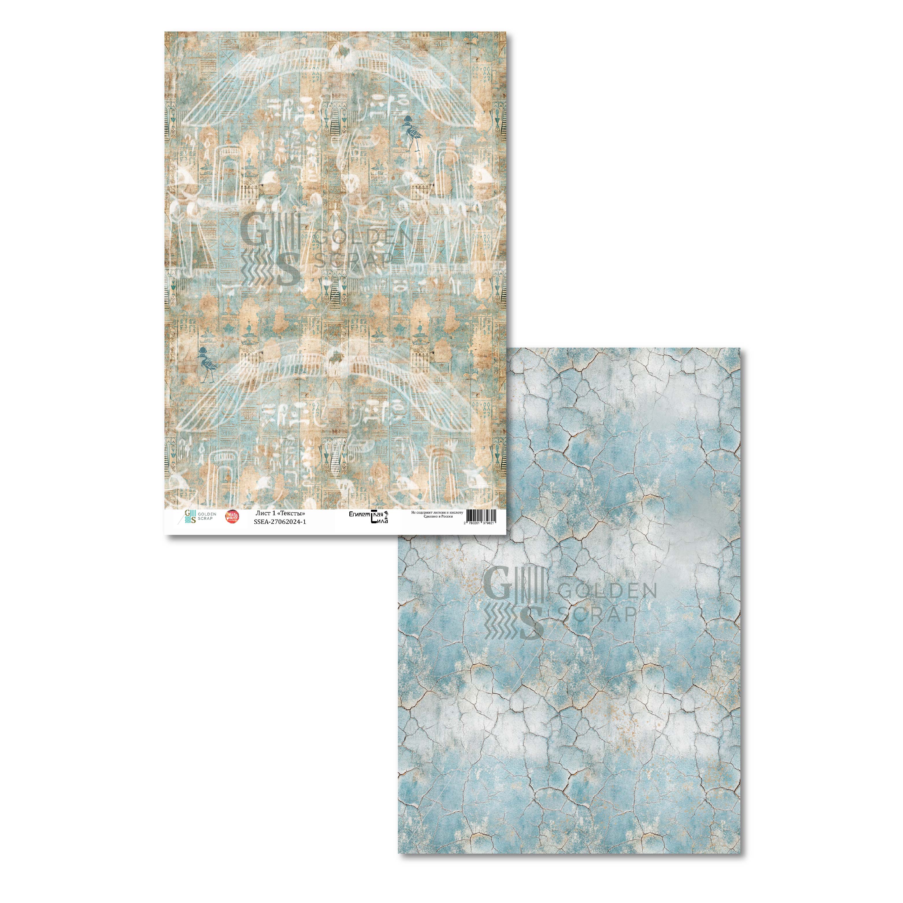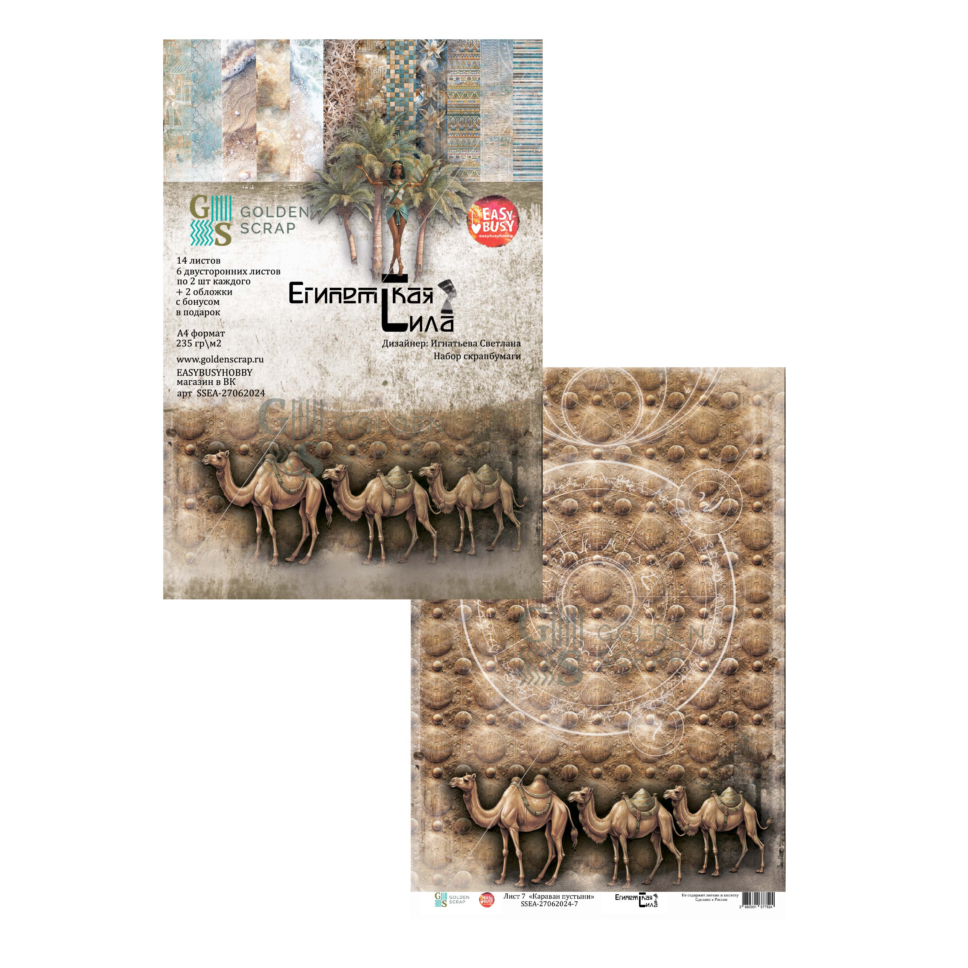 Набор двусторонней бумаги "Египетская сила" от GoldenScrap и EasyBusyHobby, формат а4, 235г, 14 листов (6 л*2 шт+2 бонусных обложки), арт. SSEA-27062024