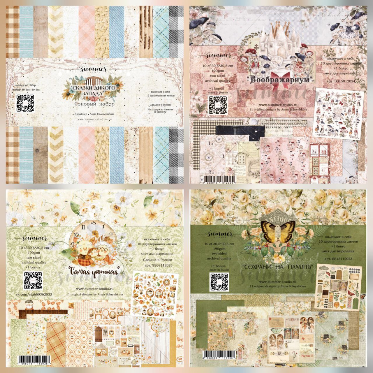 "ДЛЯ ДУШИ" - Комплект (сет) из 4х наборов бумаги для скрапбукинга 30,5х30,5 см от Голден Скрап (GoldenScrap)
