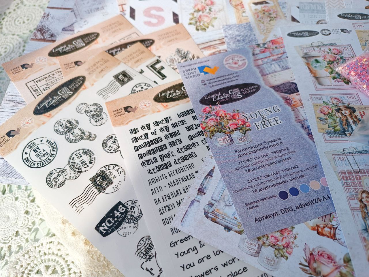 Лот "Молодая и свободная" (Young and free №2) - Набор бумаги формата А4 (18 двусторонних листов, 6 листов х 3 );