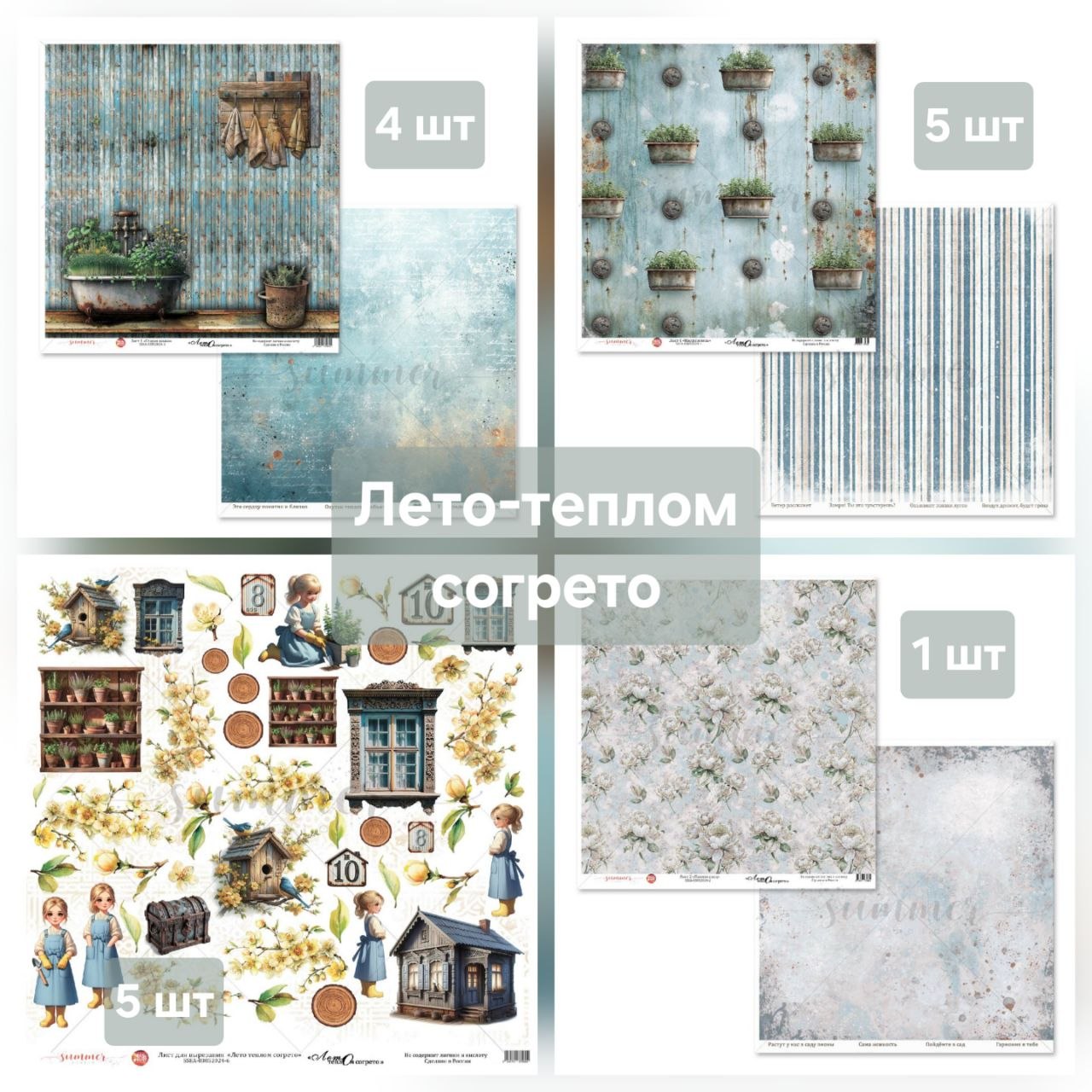 Лимитированный микс листов "Лето - теплом согрето" 190гр, 30,5*30,5см, 15 листов,
