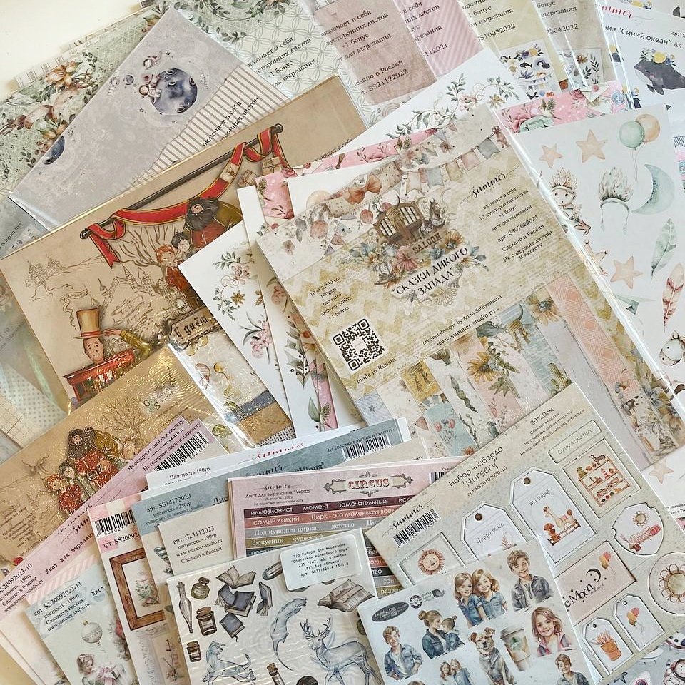 Это сет из нескольких коллекций бумаги, выпущенных под нашими брендами GoldenScrap и Summer Studio.
