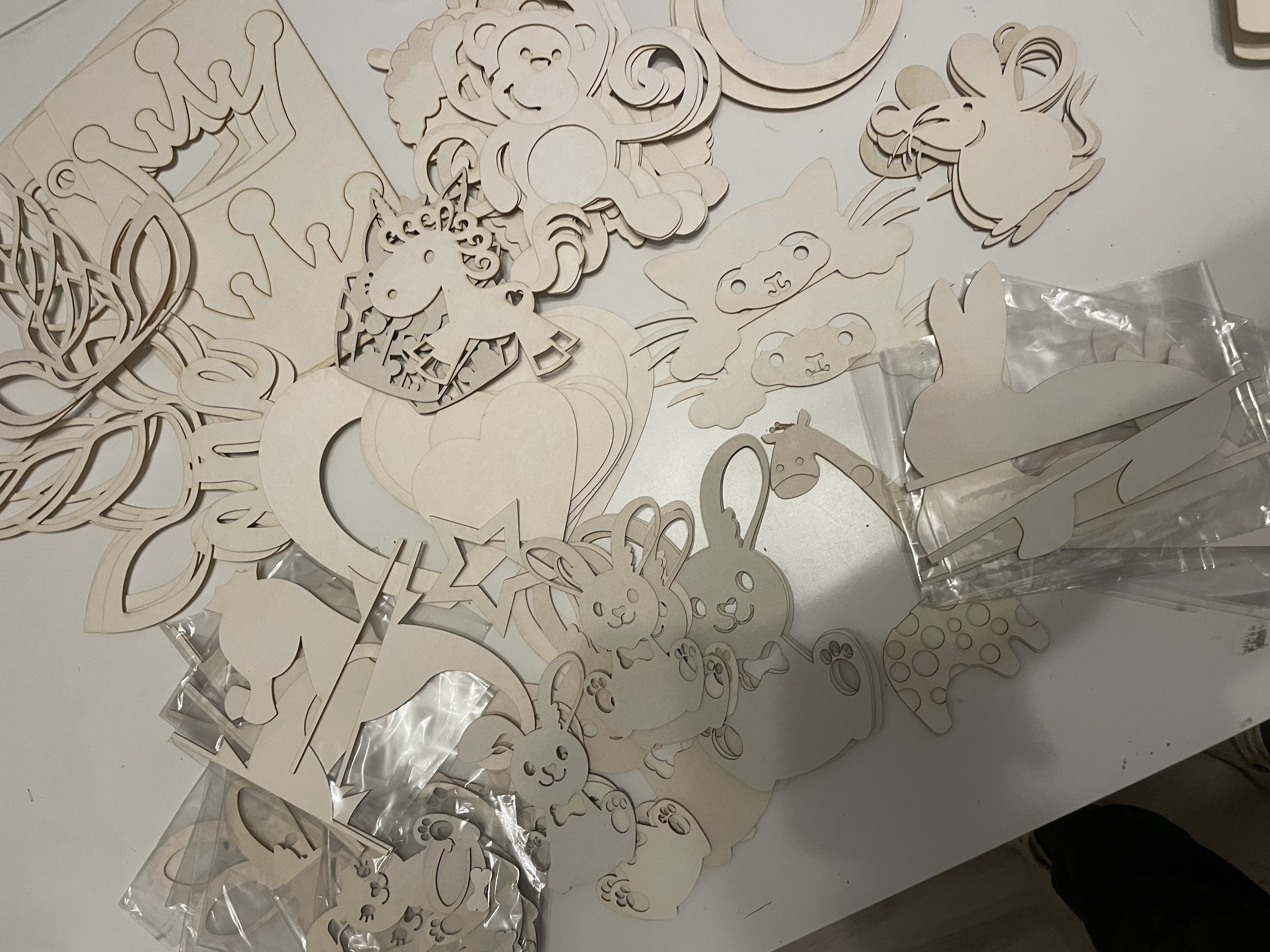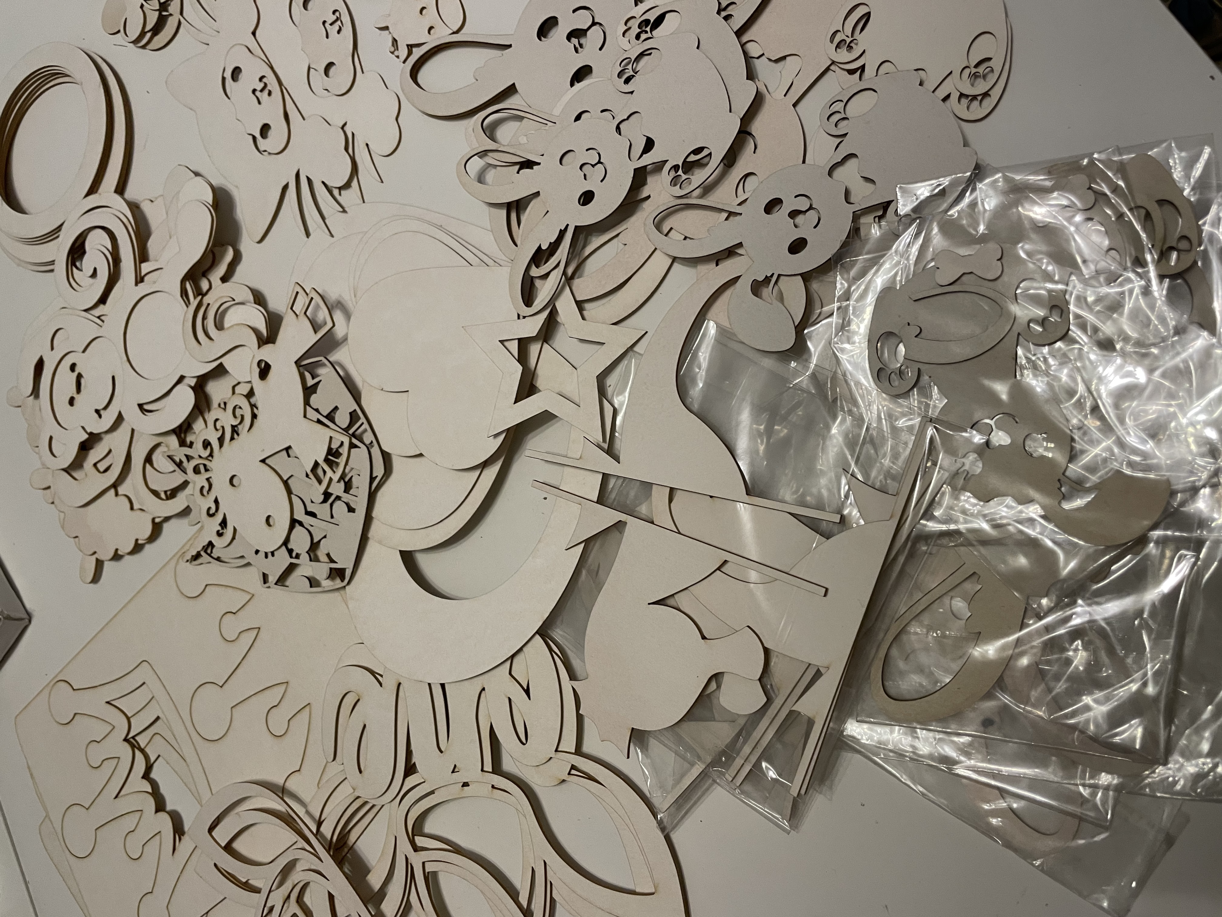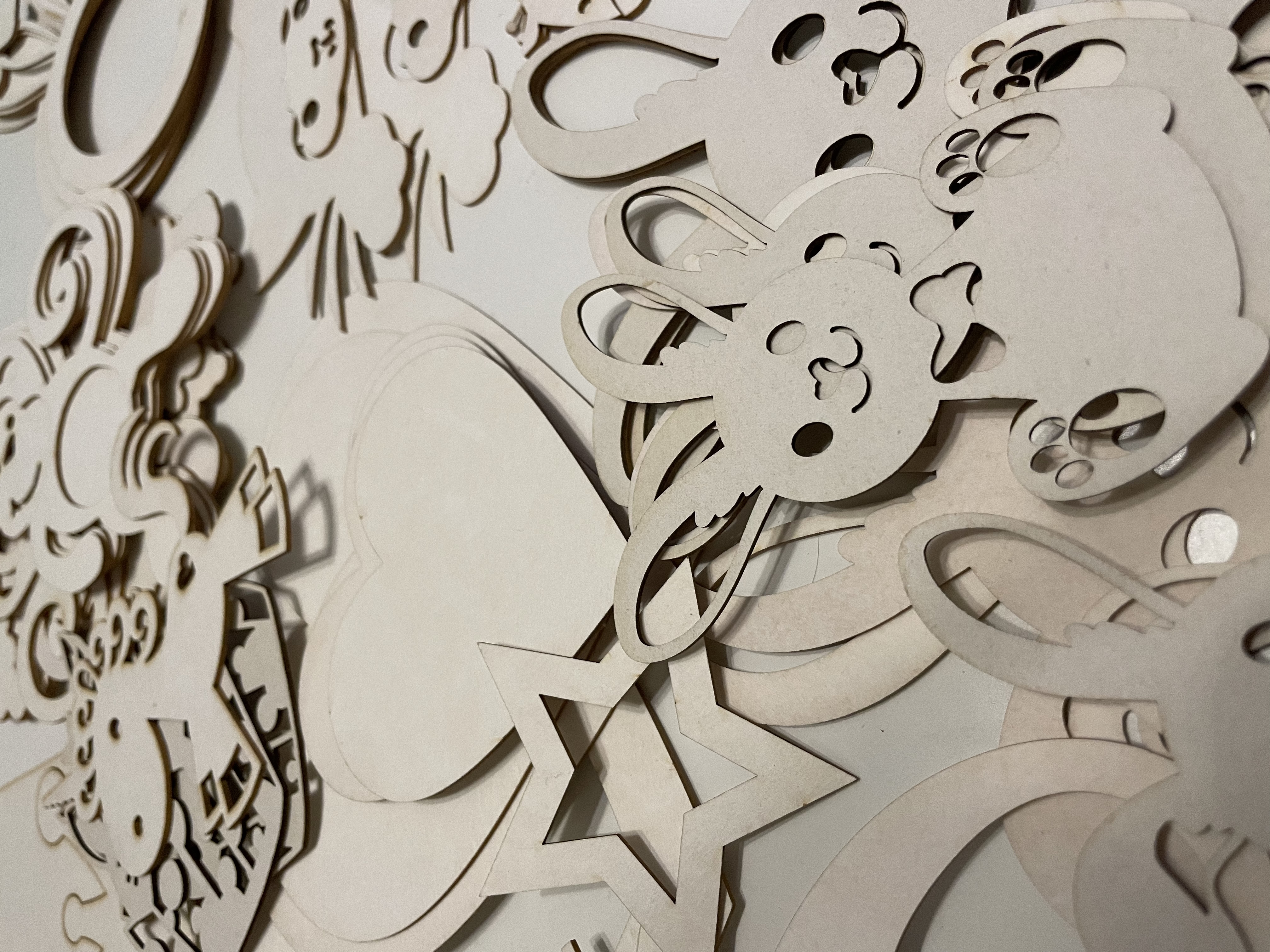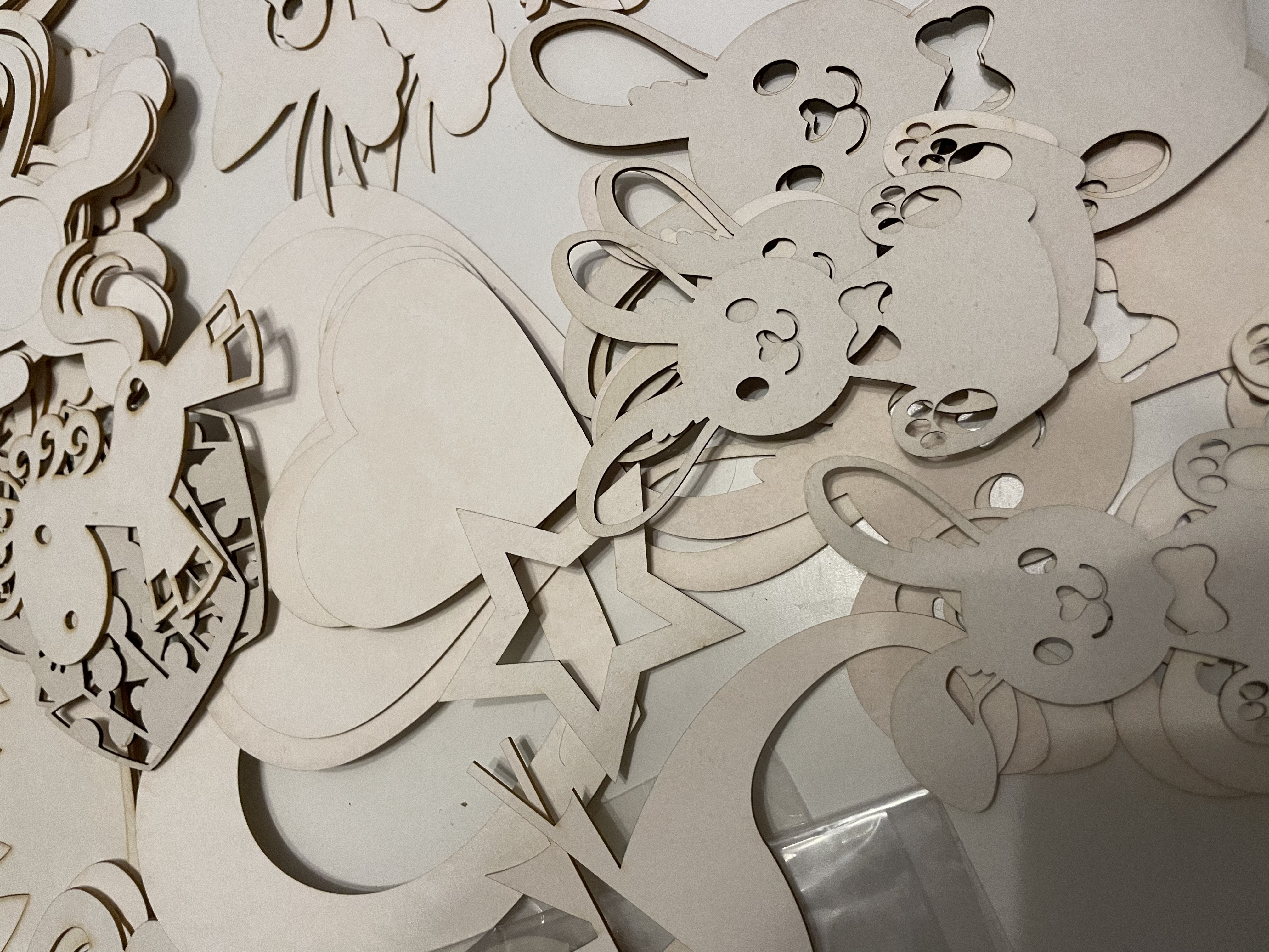 Сет заготовок для тиснения, примерно 65 элементов, наполнение микс для девочек (в основном животные + могут быть сердечки, рамочки, микки маус и тд)